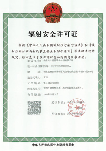 山東光大特種設(shè)備檢測有限公司是經(jīng)山東省市場監(jiān)督管理局核準(zhǔn)的甲類B1特種設(shè)備綜合檢驗機構(gòu)。2017年9月30日取得了山東省市場監(jiān)督管理局頒發(fā)的《檢驗檢測機構(gòu)資質(zhì)認(rèn)定證書》。2018年2月22日取得了山東省市場監(jiān)督管理局頒發(fā)的《特種設(shè)備檢驗檢測機構(gòu)核準(zhǔn)證》(起重機械)檢驗檢測資質(zhì)。2021年11月取得山東省市場監(jiān)督管理局版發(fā)的《特種設(shè)備檢驗檢測機構(gòu)核準(zhǔn)證》(安全閥在線、離線)校驗資質(zhì)。2023年11月取得山東省市場監(jiān)督管理局頒發(fā)的甲類檢驗機構(gòu)B1《特種設(shè)備檢驗檢測機構(gòu)核準(zhǔn)證》,具有壓力容器(RD2...